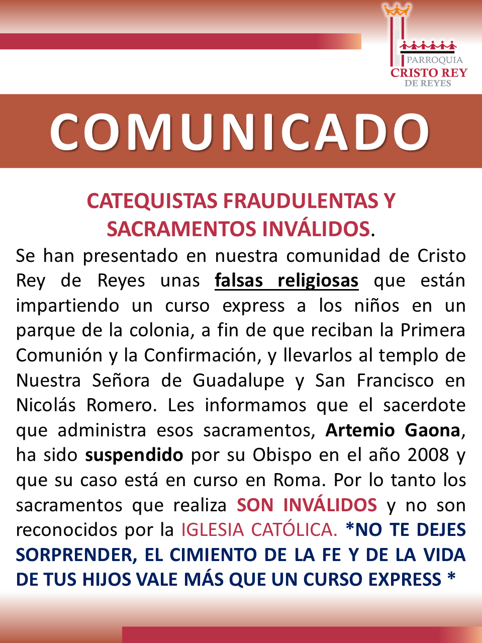 AVISOS PARROQUIALES - CRISTO REY
